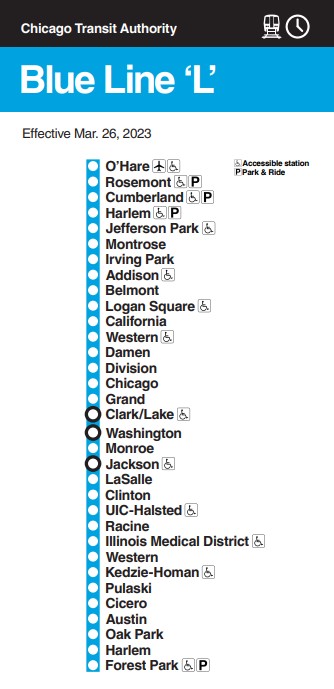 Estos trenes operan por toda la ciudad de Chicago, por lo que llegar hasta el centro de la ciudad con ellos, no será ningún inconveniente. Es el medio más barato y rápido para llegar al centro. Tienes dos líneas dependiendo del aeropuerto al que aterrices.