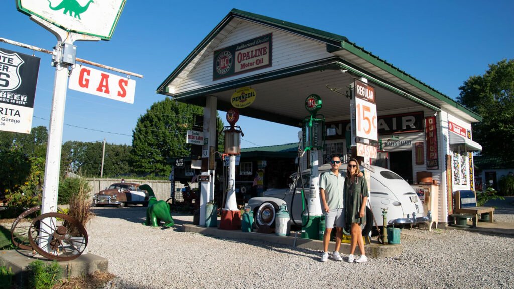 Nosotros compramos llaveros (ya que los coleccionamos de cada país al que viajamos) y nos regaló unas postales y una buena conversación. Justo al salir de la gasolinera verás en el suelo la primera señal en el asfalto de la Ruta 66.