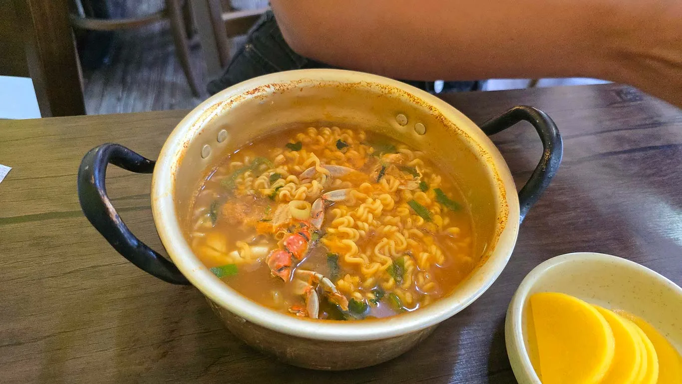 Una vez en la zona, decidimos ir a comer temprano, ya que hay varios restaurantes locales y así evitar después ir con prisas a comer. Te recomendamos mucho las cazuelas de ramen de pescado llamadas Haemul-tang, muy famosas en Busan.