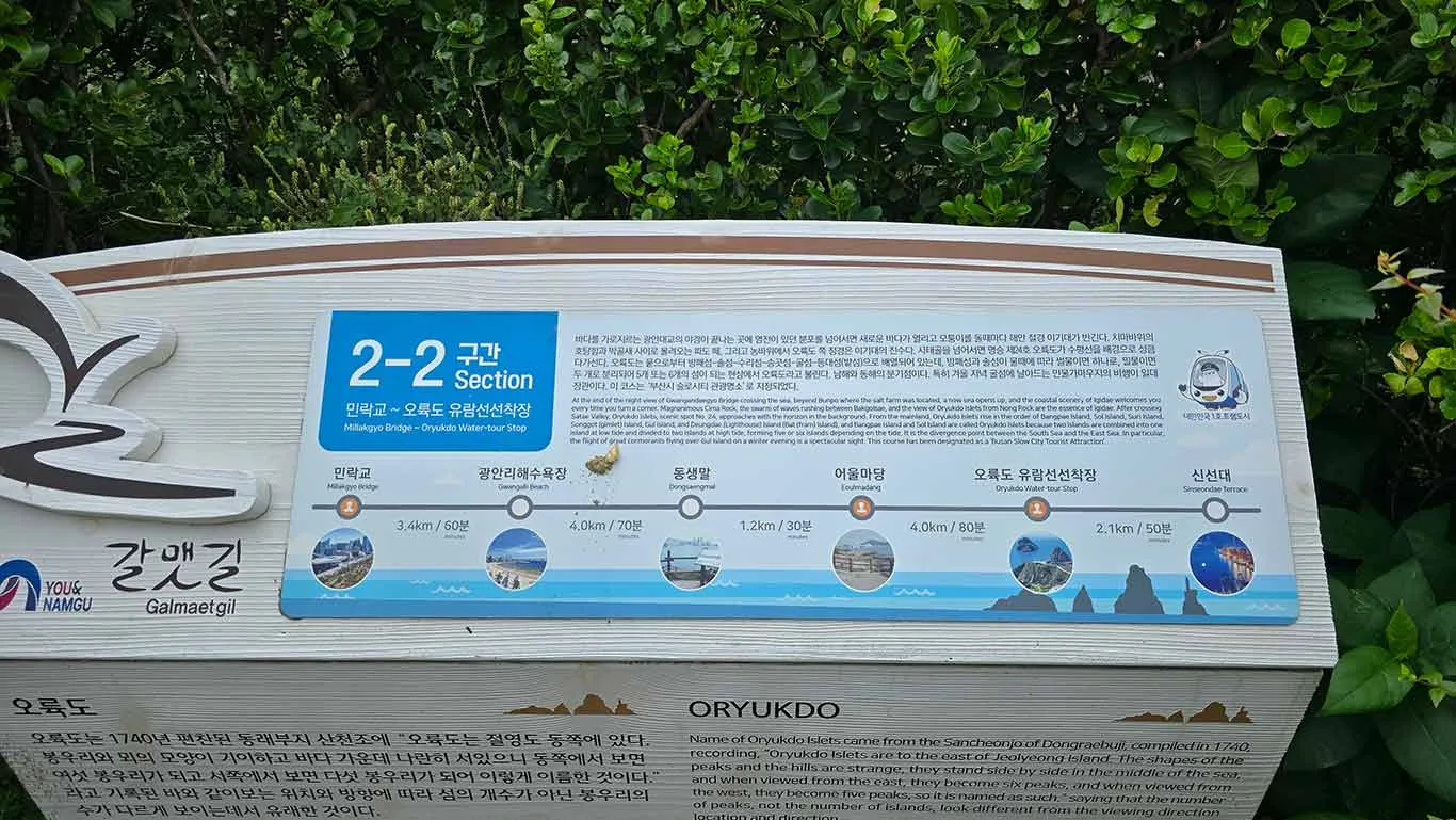 ⚠️ A TENER EN CUENTA: Puedes hacer el camino en ambos sentidos, pero la dificultad no es la misma, por lo que te recomendamos que empieces el camino desde el Oryukdo Skywalk y termines en el Puente Colgante Igidae. Así evitarás subir tramos empinados de escaleras y es más sencillo de realizar.